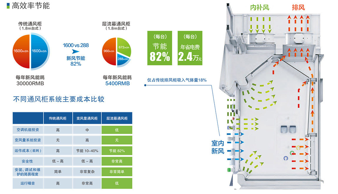 對排風柜內部氣流組織進行千次模擬,自主研發(fā)的產品;不但加速有害氣體的排出,同時減少了排風柜的總排風量。
